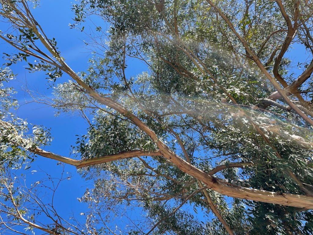 Highly flammable eucalyptus trees tower over Pie Ranch in Pescadero in October 2021. Photo by Sara Hayden. In the middle of the night, my nose bleeds. I suspect it’s from all the ash.